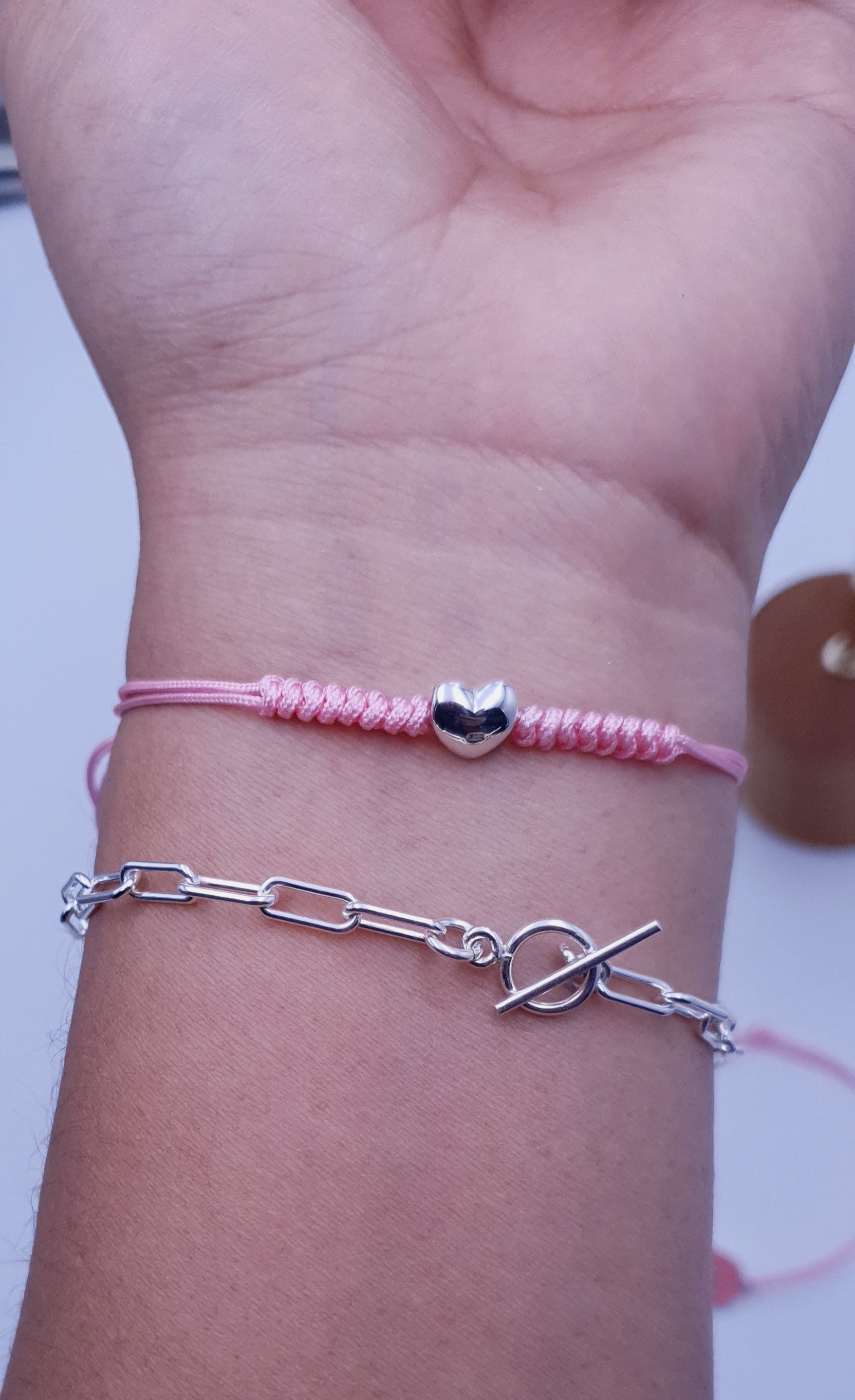 Un elegante set compuesto por una pulsera de hilo macramé, tejida a mano con detalles delicados que evocan la artesanía tradicional, y una pulsera de eslabones en plata de ley 925, que aporta un toque sofisticado y atemporal. La combinación perfecta entre modernidad y encanto artesanal, ideal para realzar cualquier estilo con un toque exclusivo.